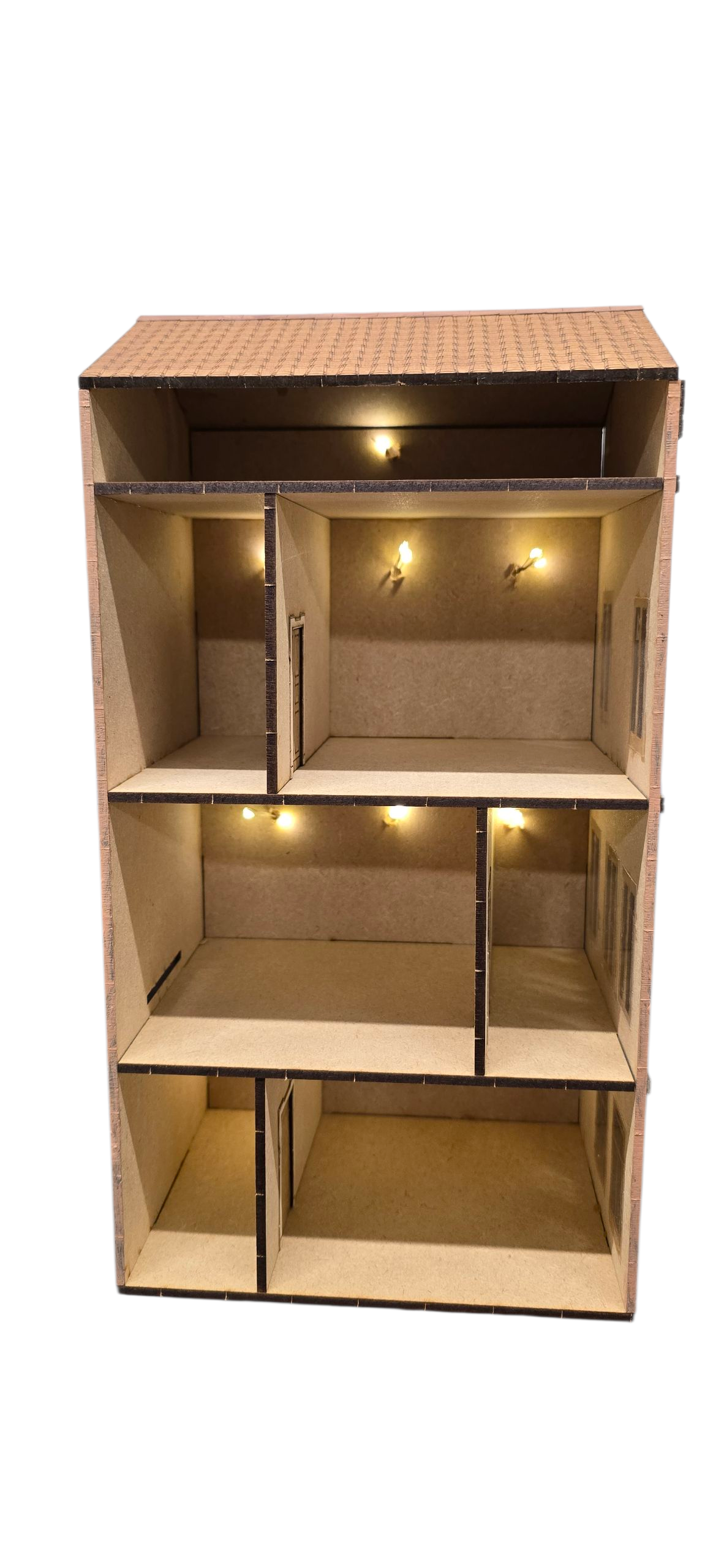 - Three floors, with the option for three or six rooms using the divided walls